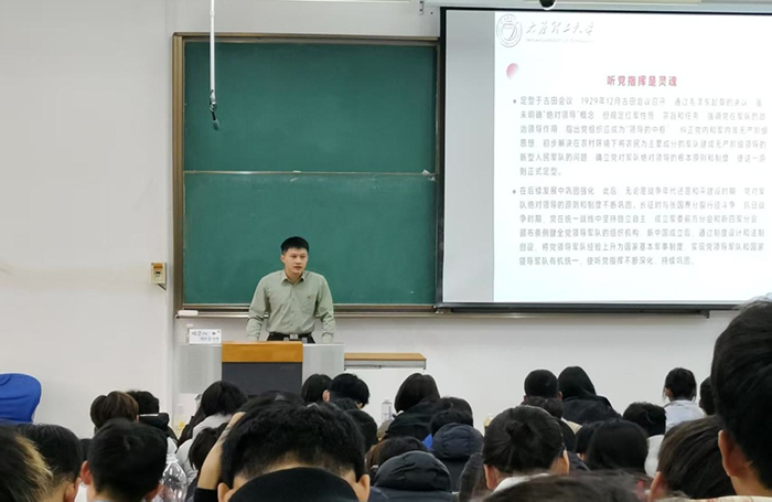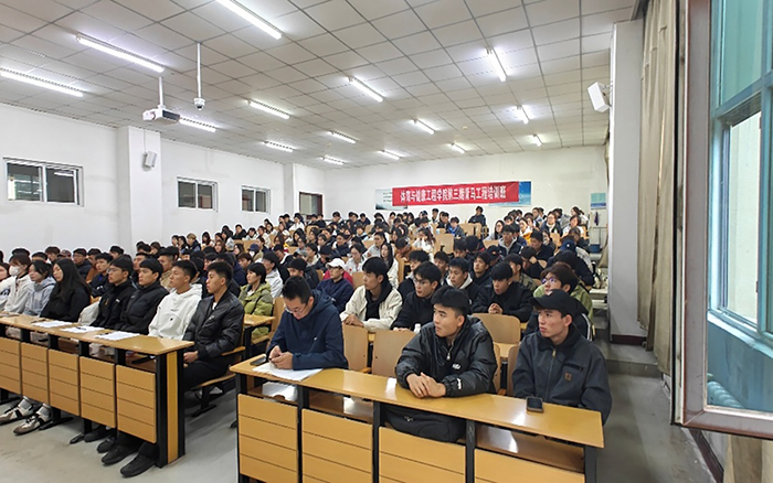 体育与健康工程学院退伍大学生符兴民以《听党指挥、能打胜仗、作风优良》为题,结合自身军旅经历,阐释了新时代青年应具备的忠诚品格、过硬本领与优良作风,鼓舞学员砥砺奋进、锤炼意志。