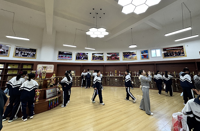 在标准化篮球训练场馆,来访学子近距离感受太理男篮备赛日常与团队协作理念,体悟竞技体育背后的严谨态度、规则意识与责任担当。在荣誉陈列室,基地全面展现太理男篮荣耀征程:两夺CUBAL全国总冠军、十九次斩获西北赛区冠军,魏明亮、周湛东、王洪等优秀学子从校园赛场走向CBA职业联赛。熠熠奖牌与奋进足迹,生动诠释薪火相传的拼搏精神,彰显以体育人、以赛育人的扎实成效。在力量训练区,专业完备的训练设备与科学系统的锻炼方案,让同学们深刻认识体育于强健体魄、磨砺意志、塑造品格的重要作用。