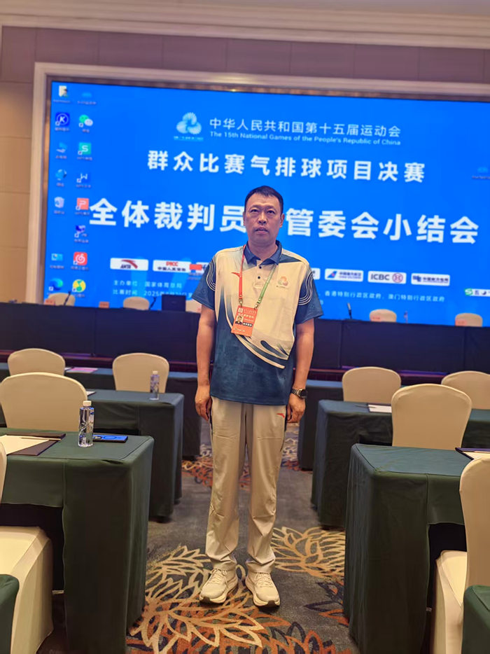 排球国家级裁判员。在广东省台山市新宁体育馆举行的全运会群众比赛气排球项目决赛中,排球国家级裁判员安宁老师肩负重要执裁使命。他始终秉持“公平公正”原则,以娴熟的裁判技术和认真负责的工作态度严格执行比赛规则,并与其他裁判员密切配合,确保每一场比赛有序进行。他的专业表现获得了全体裁判员管委会的一致好评,他的专业亦为赛事的成功举办注入了太理力量。
