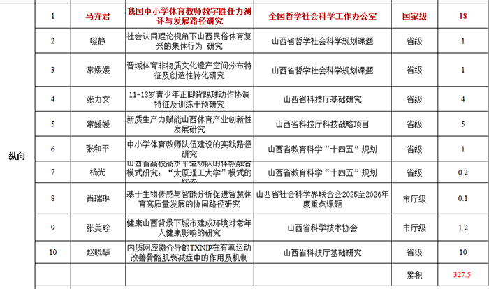 · 马卉君老师主持的国家社会科学基金项目,获得18万元经费支持,彰显了学院在体育人文社科基础研究领域的深厚底蕴与学术担当。