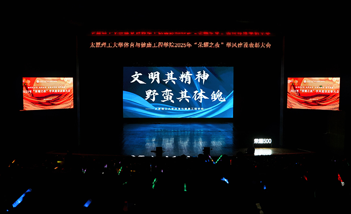 星霜荏苒,新元肇启。2025年12月27日晚,太原理工大学体育与健康工程学院在明向大礼堂隆重举行2025年“荣耀之夜”学风建设表彰大会,荣耀终端股份有限公司山西业务部部长 陈行、山西经济管理干部学院团委书记徐嘉、团委副书记龚娜以及我校学生工作部(研究生工作部、人民武装部)副部长李和凤、校团委和兄弟学院团干部受邀出席活动,体育与健康工程学院党委书记张体卫、院长张美珍、副院长张和平以及各系部负责人、教师代表与全体研究生、本科生欢聚一堂,共赴盛会、喜迎新年。现场座无虚席,气氛热烈祥和。