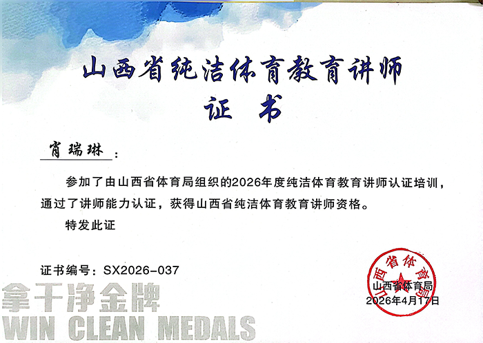 作为我校体育科学与健康促进领域的重要教学科研单位,我院始终将体育伦理与反兴奋剂教育作为人才培养的重要内容。两位老师连续参训并取得进阶认证,充分体现了我院在纯洁体育教育领域持续深耕、主动对接行业发展需求的积极作为。学院将继续支持教师参与高水平专业培训与学术交流,着力打造具有社会责任感和专业引领力的体育教育团队,为山西省体育事业高质量发展贡献力量。